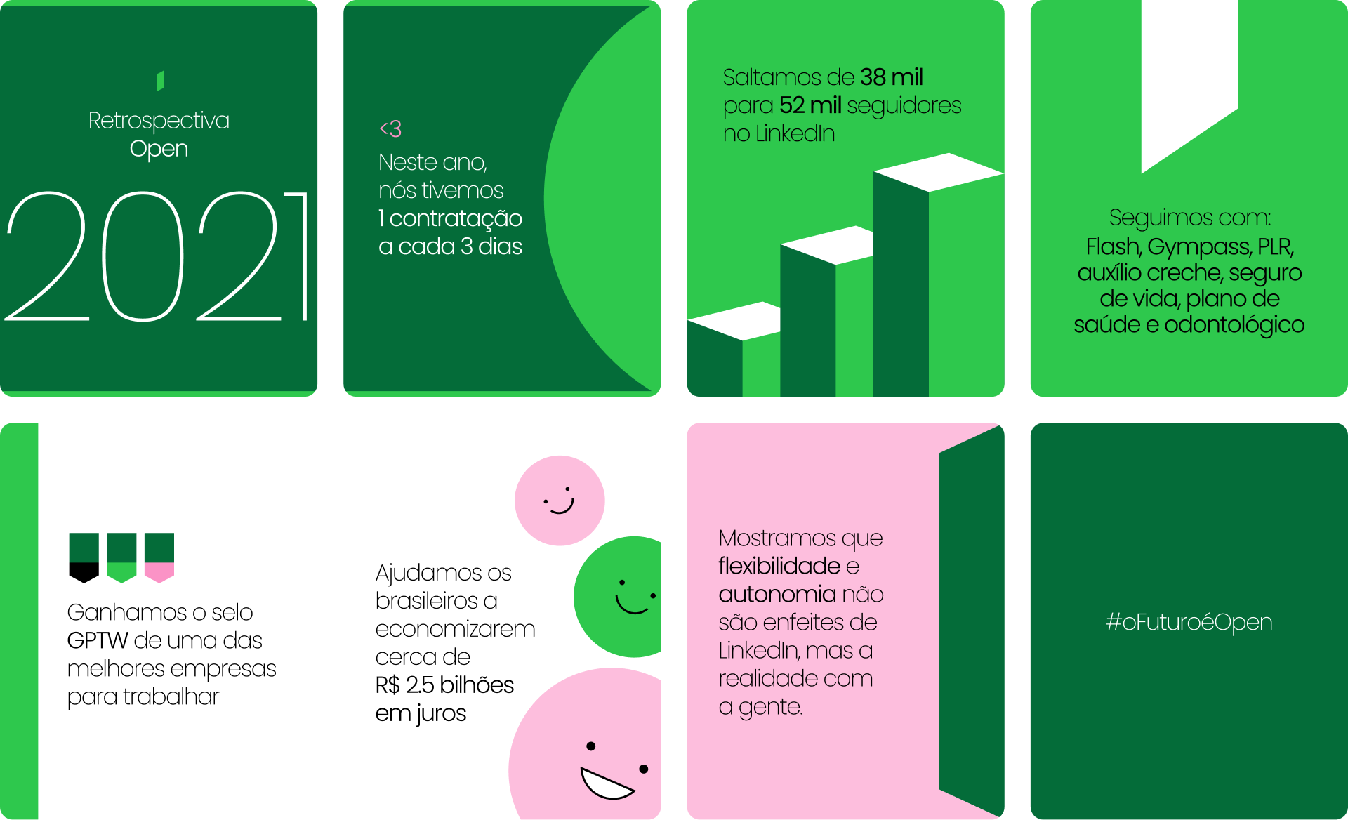 At Open Co, I was responsible for internal and external design, making social posts for Instagram and Linkedin, offline material for employees and internal communications