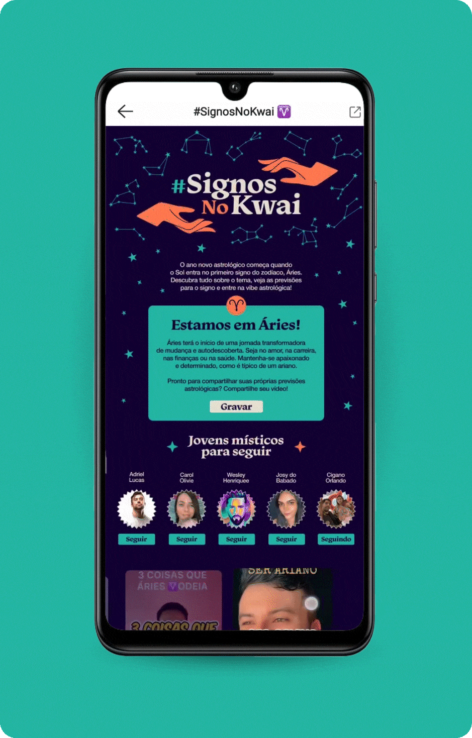 A project by Kwai Brasil Operations Team to bring more content about Zodiac. I was responsible for creating the KV and building the landing page (H5)
